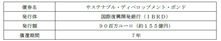JA共済連(全国共済農業協同組合連合会、代表理事理事長 村山美彦)は、世界銀行グループの一機関である国際復興開発銀行(以下、IBRD)が発行する「サステナブル・ディベロップメント・ボンド(以下、本債券)」に90百万ユーロ(約155億円)の投資を行いましたので、お知らせいたします。